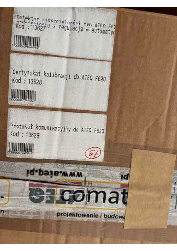 - ruchomości w postaci testera szczelności/detektora nieszczelności ATEQ model F620 wraz z certyfikatem kalibracji oraz z protokołem komunikacyjnym, ujętej w spisie inwentarza złożonym do akt postępowania upadłościowego pod pozycją nr 1.79 (dalej także jako: przedmiot konkursu).