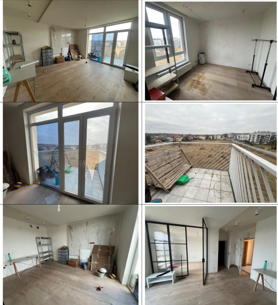 Mieszkanie znajduje przy ulicy Kobierzyńskiej 134B/24 na 4 piętrze budynku wielolokalowego wybudowanego w 2020 roku. Lokal składa się z pokoju z aneksem kuchennym, łazienki oraz sypialni. Do lokalu przylega balkon. Jest on w stanie częściowo wykończonym.
