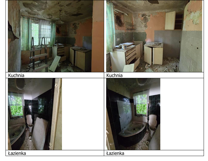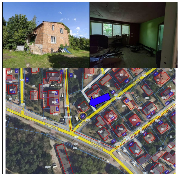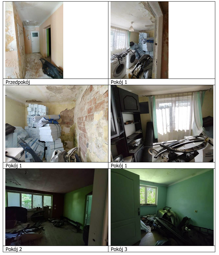 Jest to lokal mieszkalny nr 1, położony jest na I kondygnacji (parter) budynku jednorodzinnego dwulokalowego, wybudowanego najprawdopodobniej w latach 70-tych XX w., w technologii tradycyjnej, murowanej, posiadającego dwie kondygnacje nadziemne oraz jedną podziemną (piwnicę) o powierzchni użytkowej 63,87 m2. Program użytkowy lokalu (zgodnie z KW): pokój – 3, przedpokój – 1, kuchnia – 1, łazienka – 1, sień – 1.