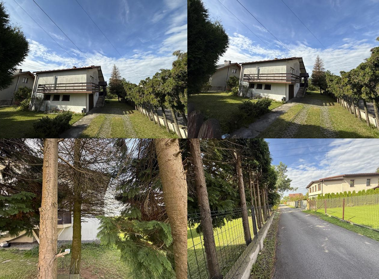 Teren działki płaski, ogrodzony, zagospodarowany zielenią pielęgnowaną, drzewami i krzewami. Podjazd i dojścia do budynku utwardzone.